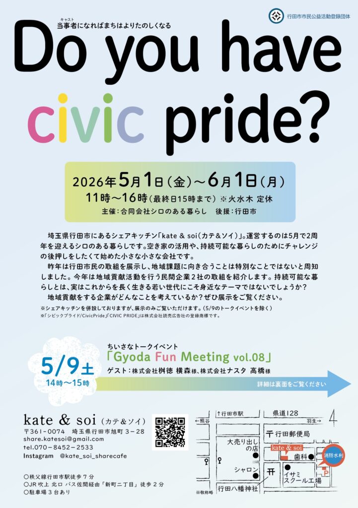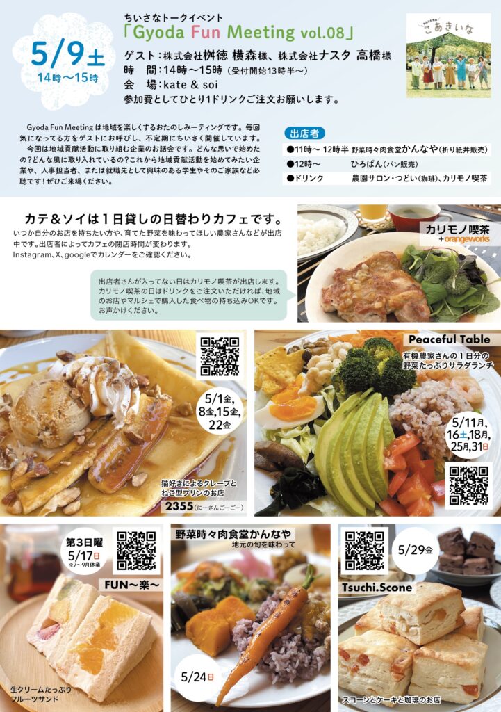5月9日(土)に、地域を楽しむためのトークイベント「Gyoda Fun Meeting vol.08」にて、桝徳の地域貢献活動についてお話させていただきます。