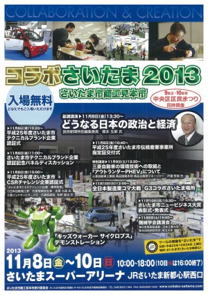 「コラボさいたま2013 さいたま市商工見本市」は、さいたま市を拠点として積極的な事業活動を展開している商工業者の展示会(見本市)として12回目の開催となります。